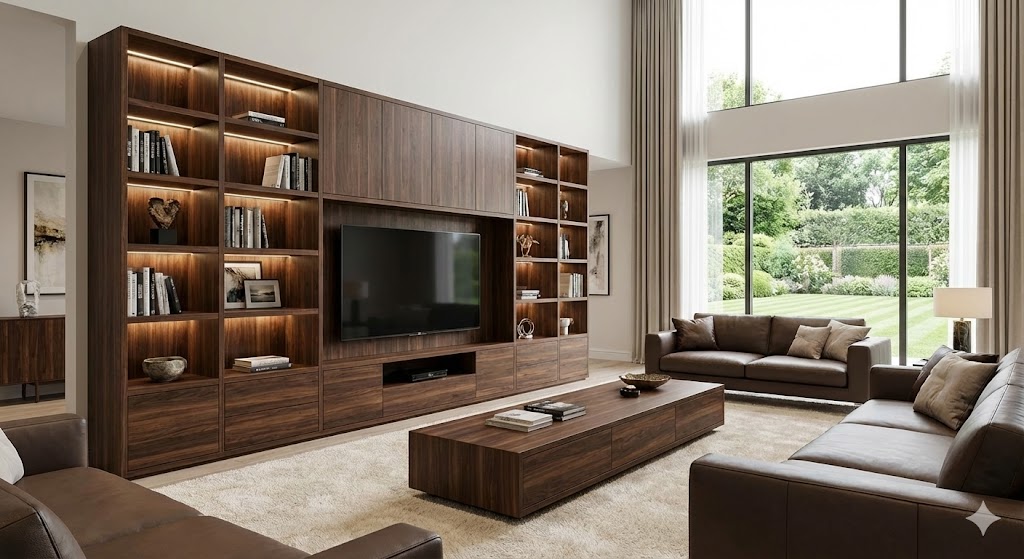 For this expansive 3-story mansion, Maxconcept provided end-to-end carpentry solutions. This included impressive wall-to-wall TV consoles, feature wall paneling, and custom storage for the high-ceiling living areas. Our team handled the complex installation logistics required for such a large property, ensuring every corner of the house was finished to perfection.